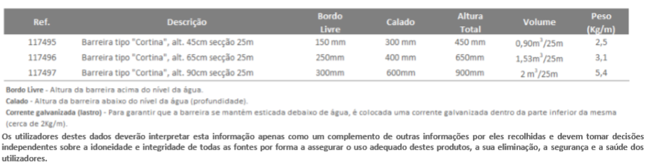 As barreiras de contenção tipo "cortina" são composta por blocos de espuma têm uma boa capacidade de resposta a aguas mais onduladas, fazendo com que sejam adequadas tanto em águas interiores como em portos/marinas.