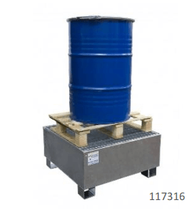 Os bacias metálicas para bidões são ideais na trasfega e/ou armazenamento de substâncias contaminantes e inflamáveis. Fabricadas em aço de baixo perfil, são oncebidas a partir de chapa galvanizada com proteção anticorrosiva nas soldaduras. Todos os modelos estão equipados com suportes na parte inferior para não entrarem em contacto com o solo, evitando assim a corrosão.